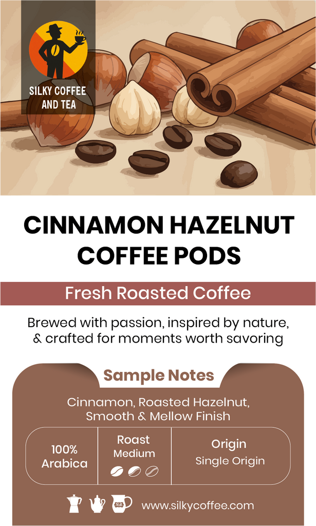 The combination of cinnamon and hazelnut pair perfectly with this medium roast coffee for a smooth, mellow cup of delight.