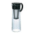Cold-brew coffee maker made of glass. To brew, add ground coffee to the fine mesh basket, add water and leave in the refrigerator to brew. Removable mesh strainer.